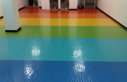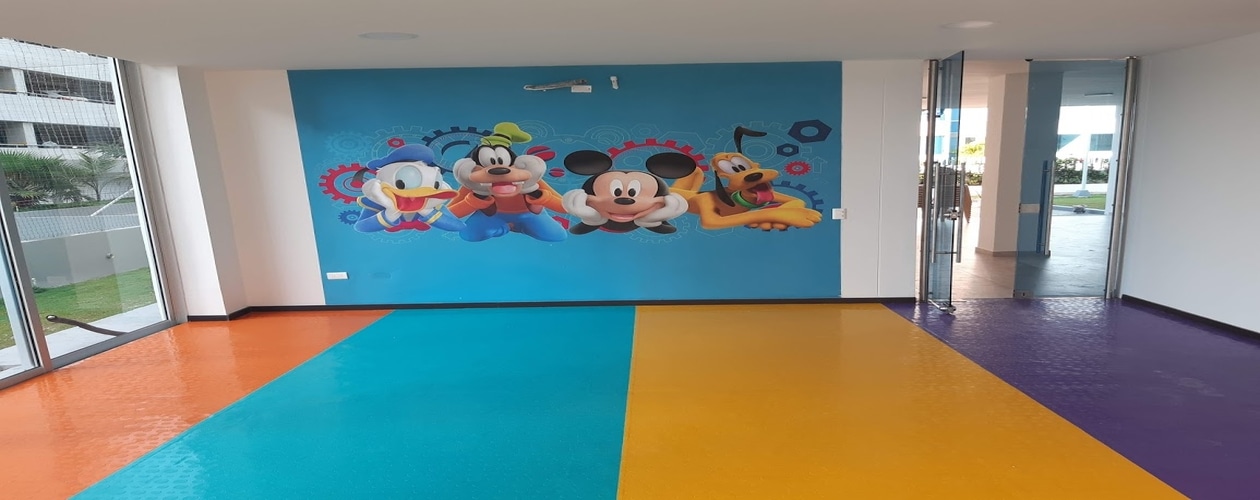 Instalación de piso en vinilo. Zona de juegos para niños.